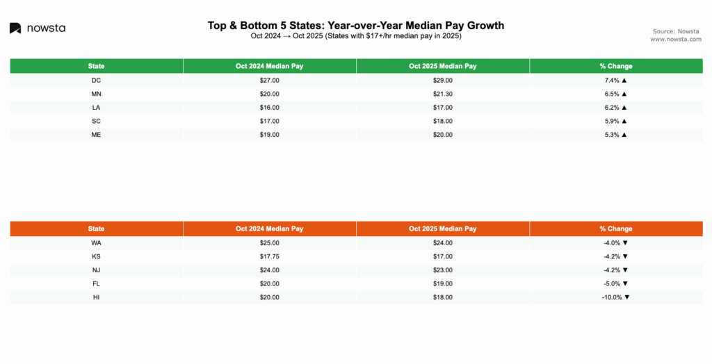 Workforce dynamics are constantly shifting, and access to precise, real-time data is essential for strategic decision-making. The Nowsta platform offers a clear view into the hourly labor market, revealing trends that impact both businesses and workers. In October alone, Nowsta facilitated the payout of $67 million in wages, demonstrating the scale of activity across our integrated workforce management system. This report analyzes key wage and tip data from the past year, offering insights into the evolving compensation landscape.
